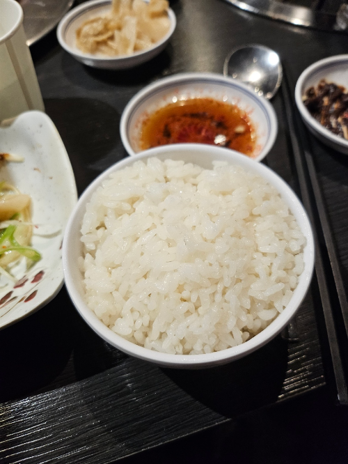 밥 시켜서 고기에 파절이 같이 먹으면