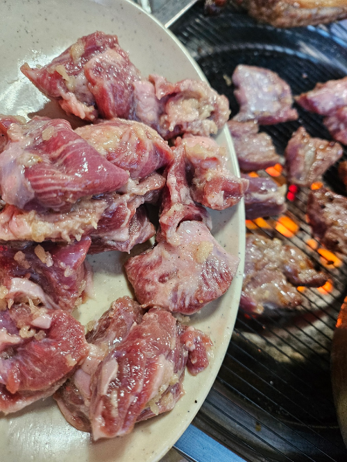 연탄불에 좀 더 굽다가 먹었는데