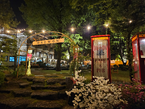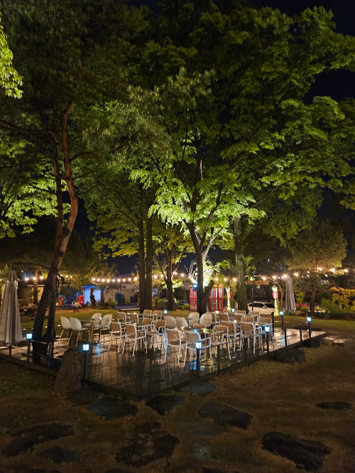 비도 와서 촉촉하고 밤에 전구가 켜지니까